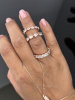 האבנים מעט קטנות יותר מה שהופך את מראה הטבעת ליותר עדינה