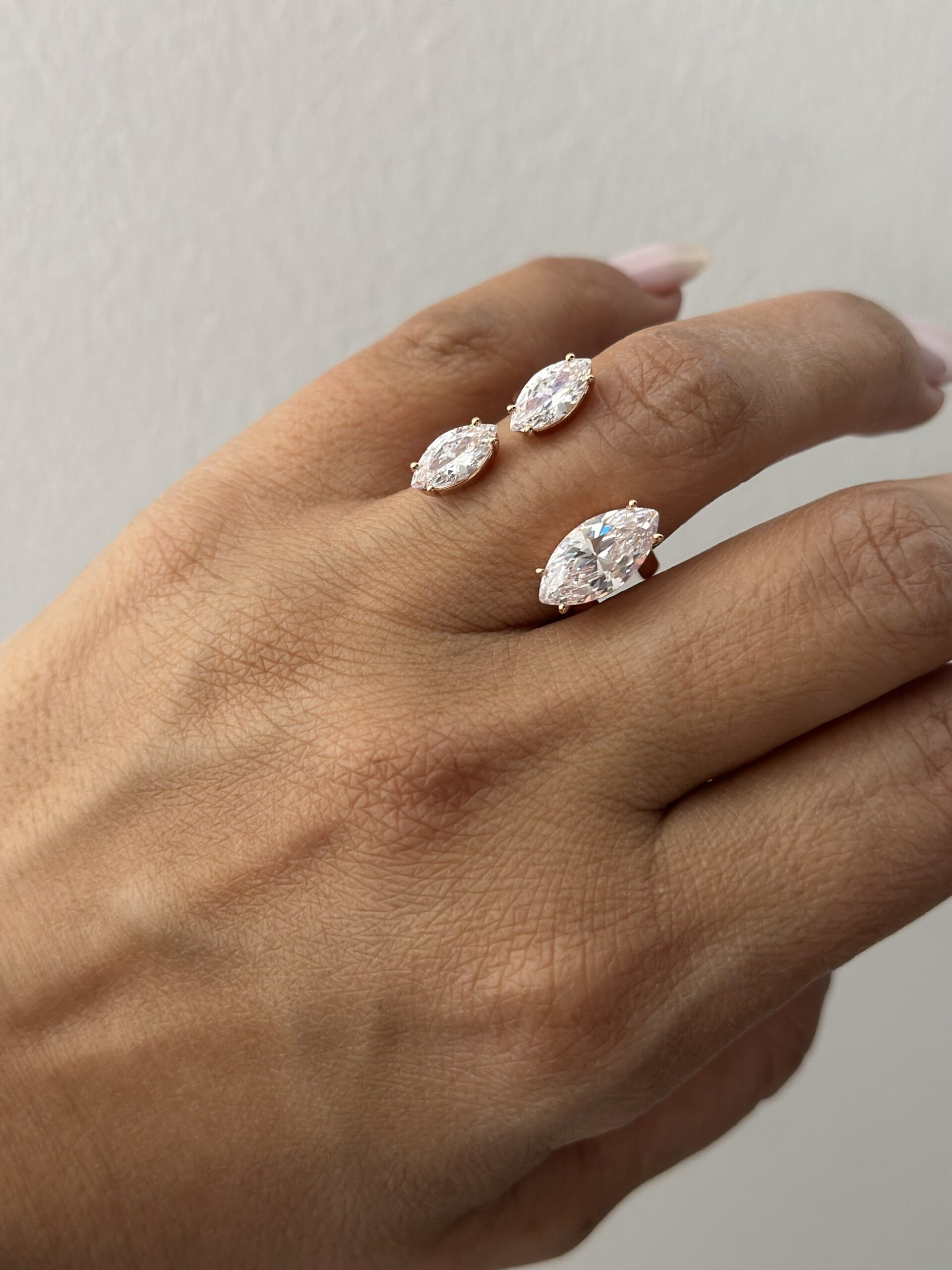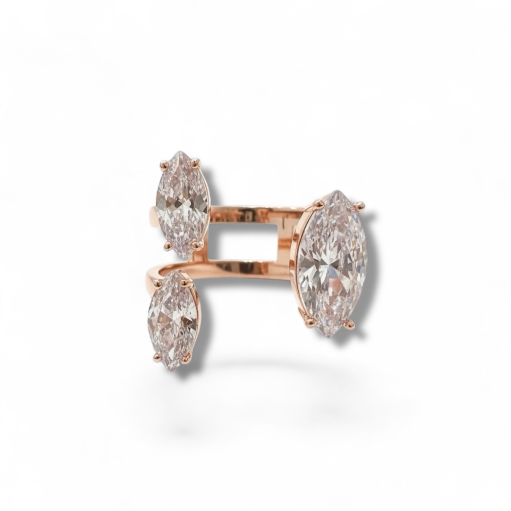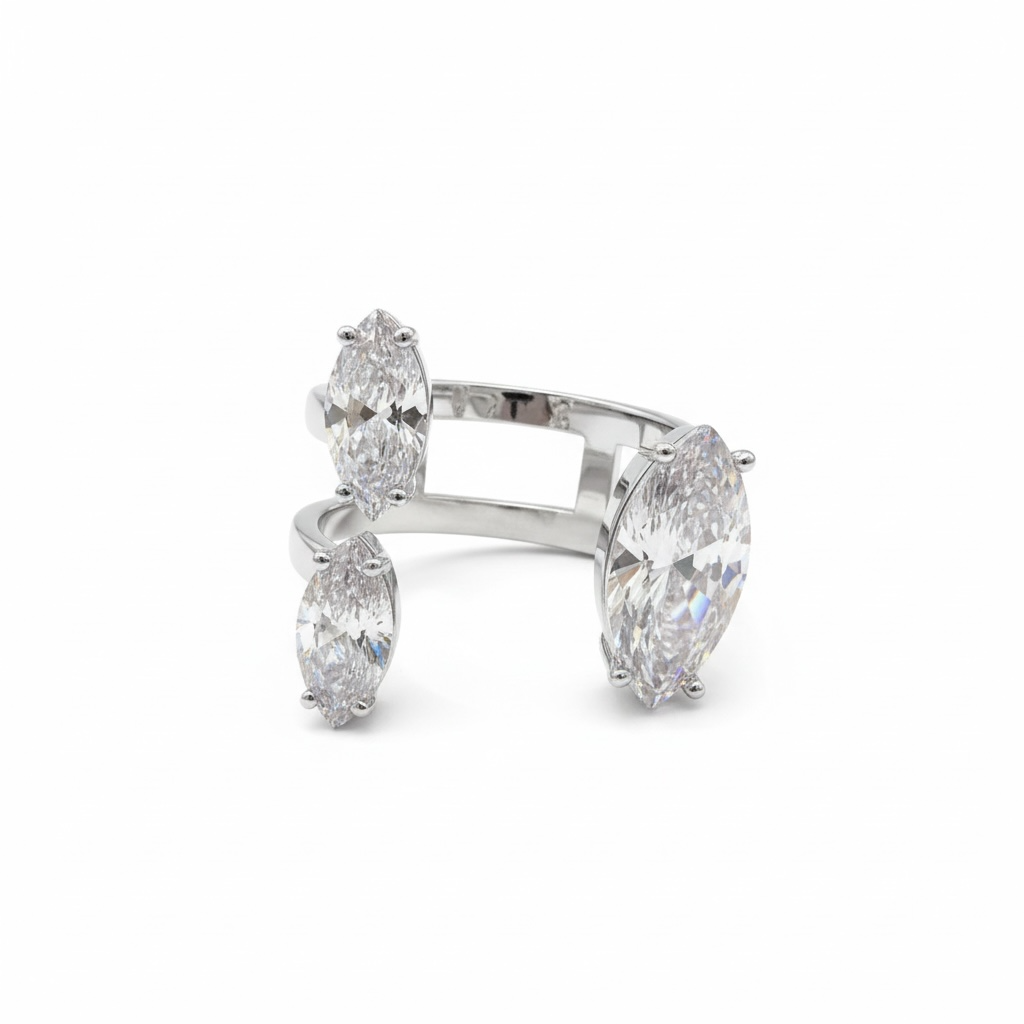 טבעת פתוחה משובצת אבני מרקיזה | טבעת זירקונים יוקרתית