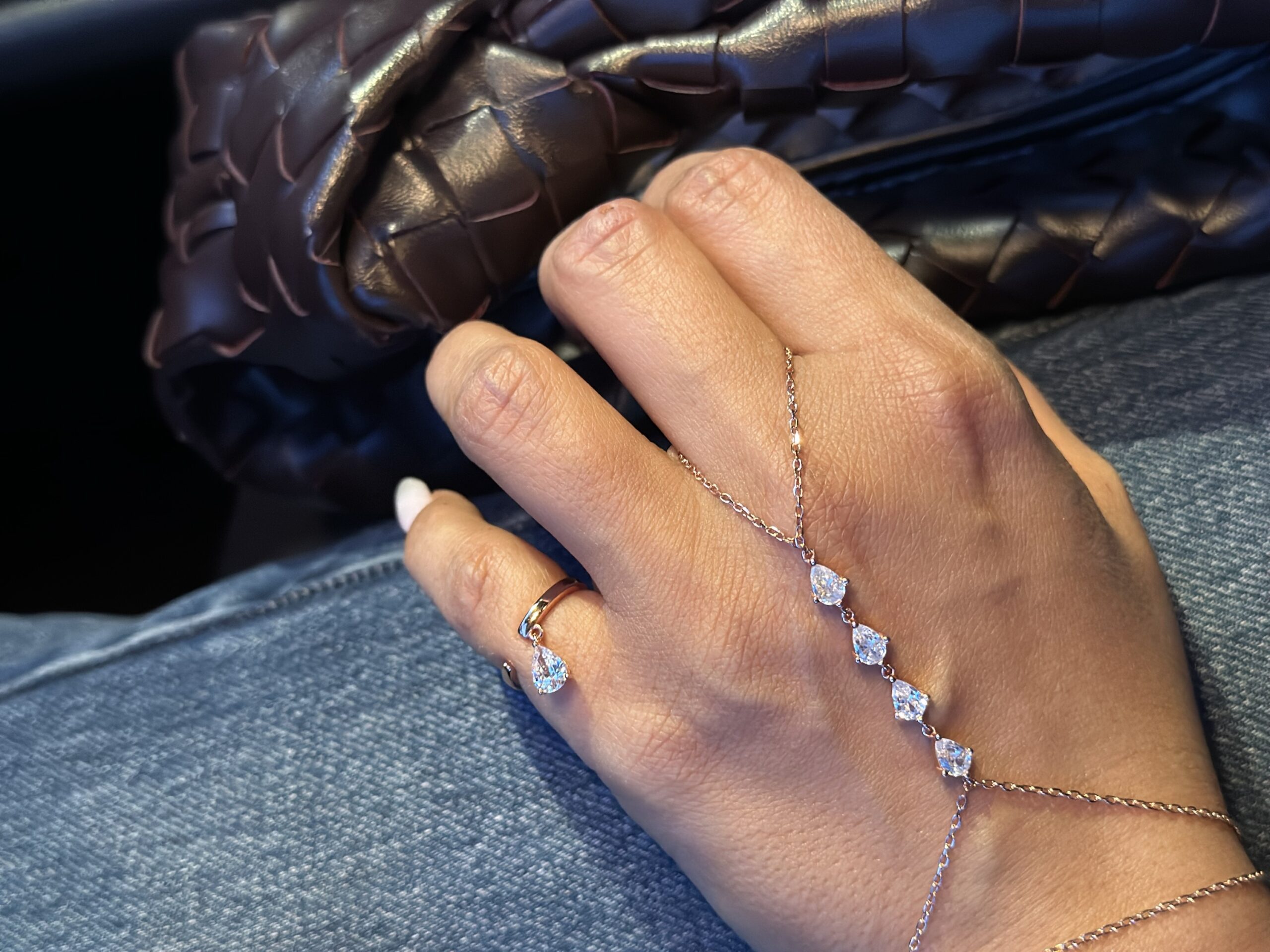 עם תליון טיפה נוצץ שיוצר תנועה רכה ונשית על היד.