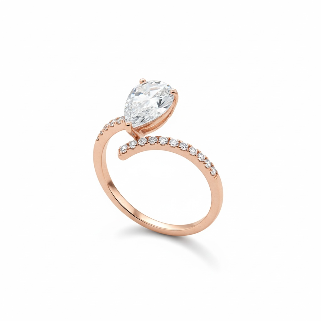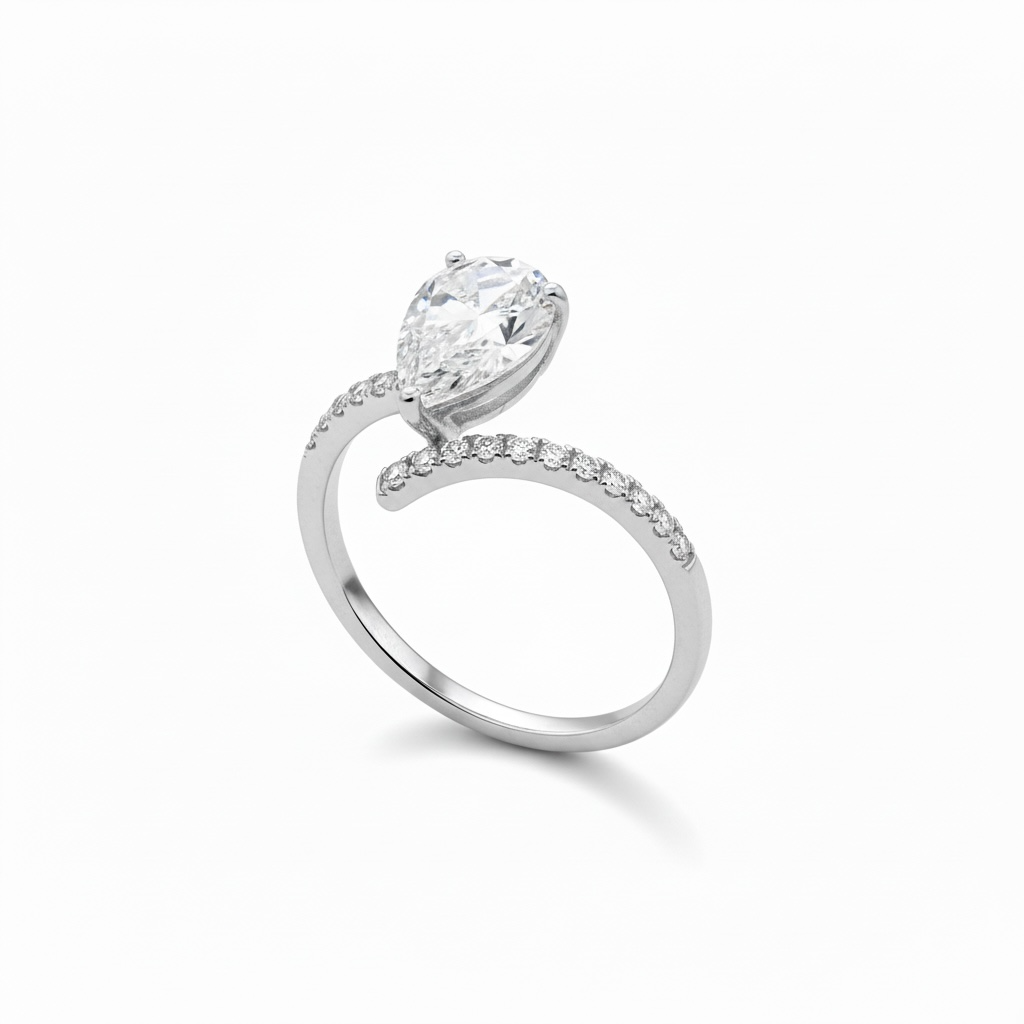 טבעת עם אבן מרכזית טיפה מכסף אמיתי עם זרקונים – נוכחות אלגנטית שלא מתנצלת