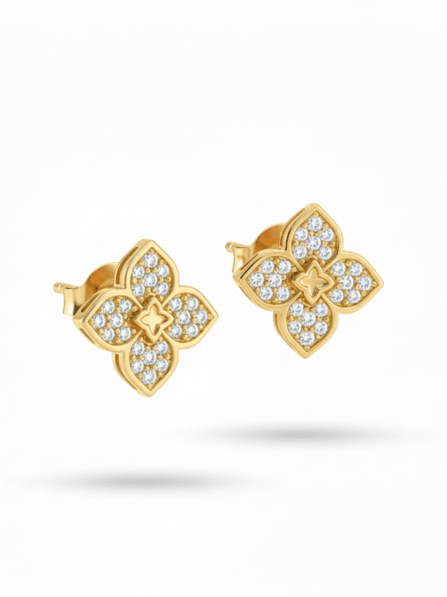 משלב עיצוב מודרני עם שיבוץ זירקונים נוצצים בצורת פרחים