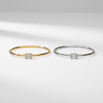 צמיד קשיח עם אבן מלבנית מרכזית מבריקה ומנצנצת במיוחד