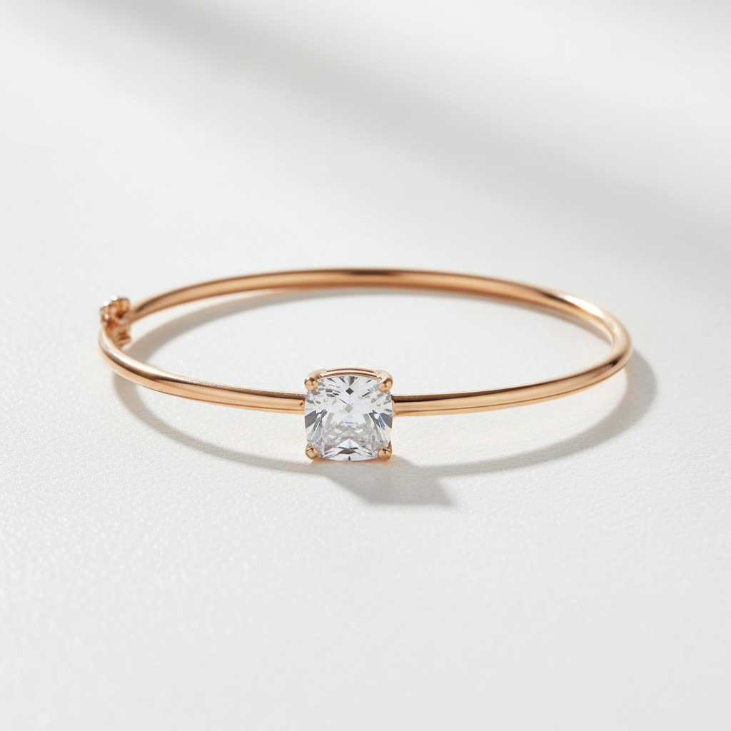 צמיד קשיח עם אבן סוליטר מבריקה ומנצנצת במיוחד