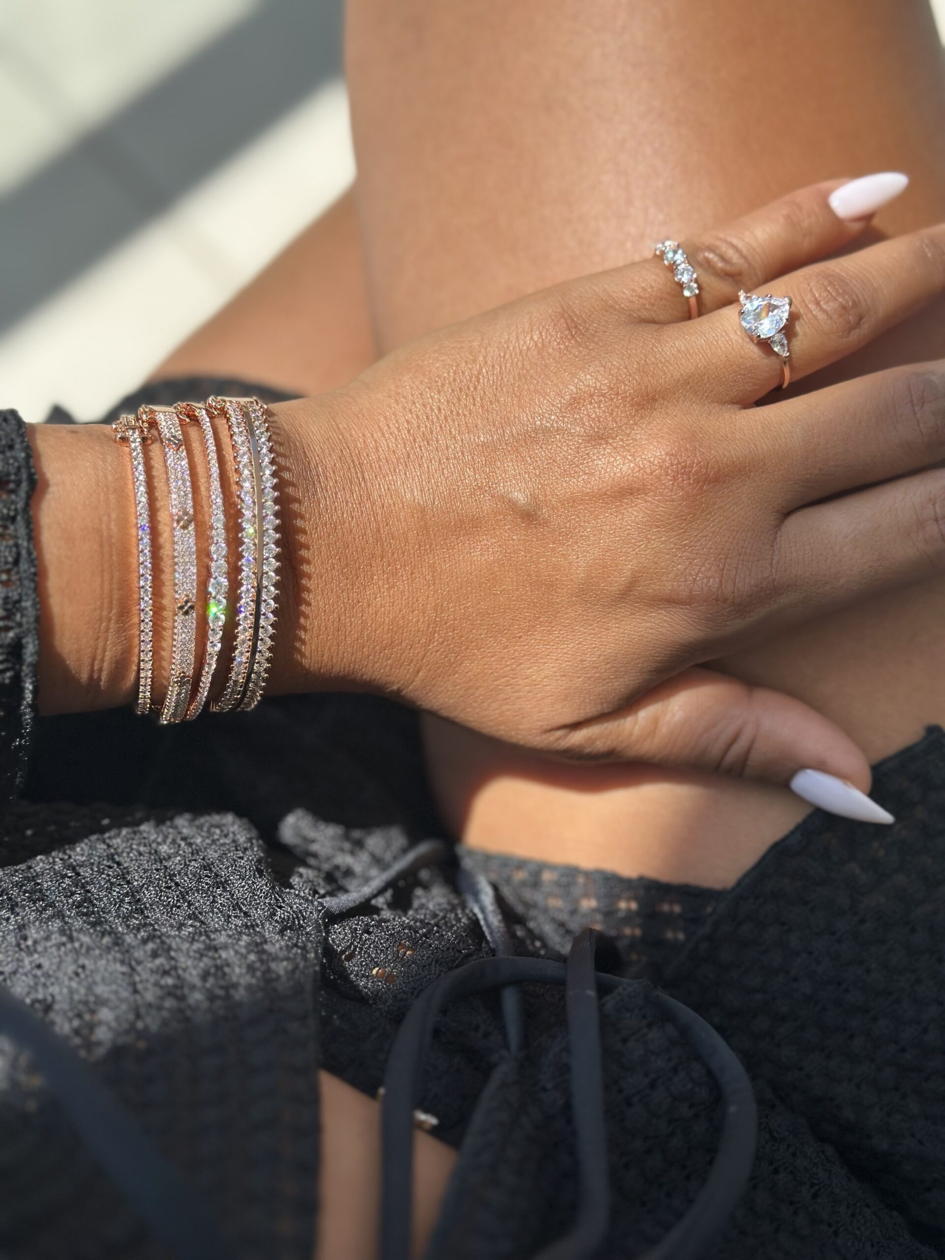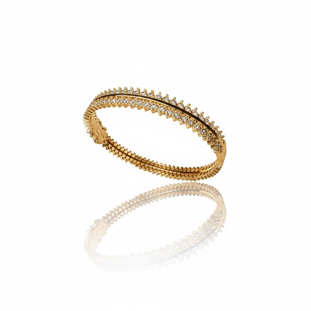 הצמיד מעוצב ע"י שתי שורות של זרקוני טיפה, ובאמצע צמיד קשיח דק חלק