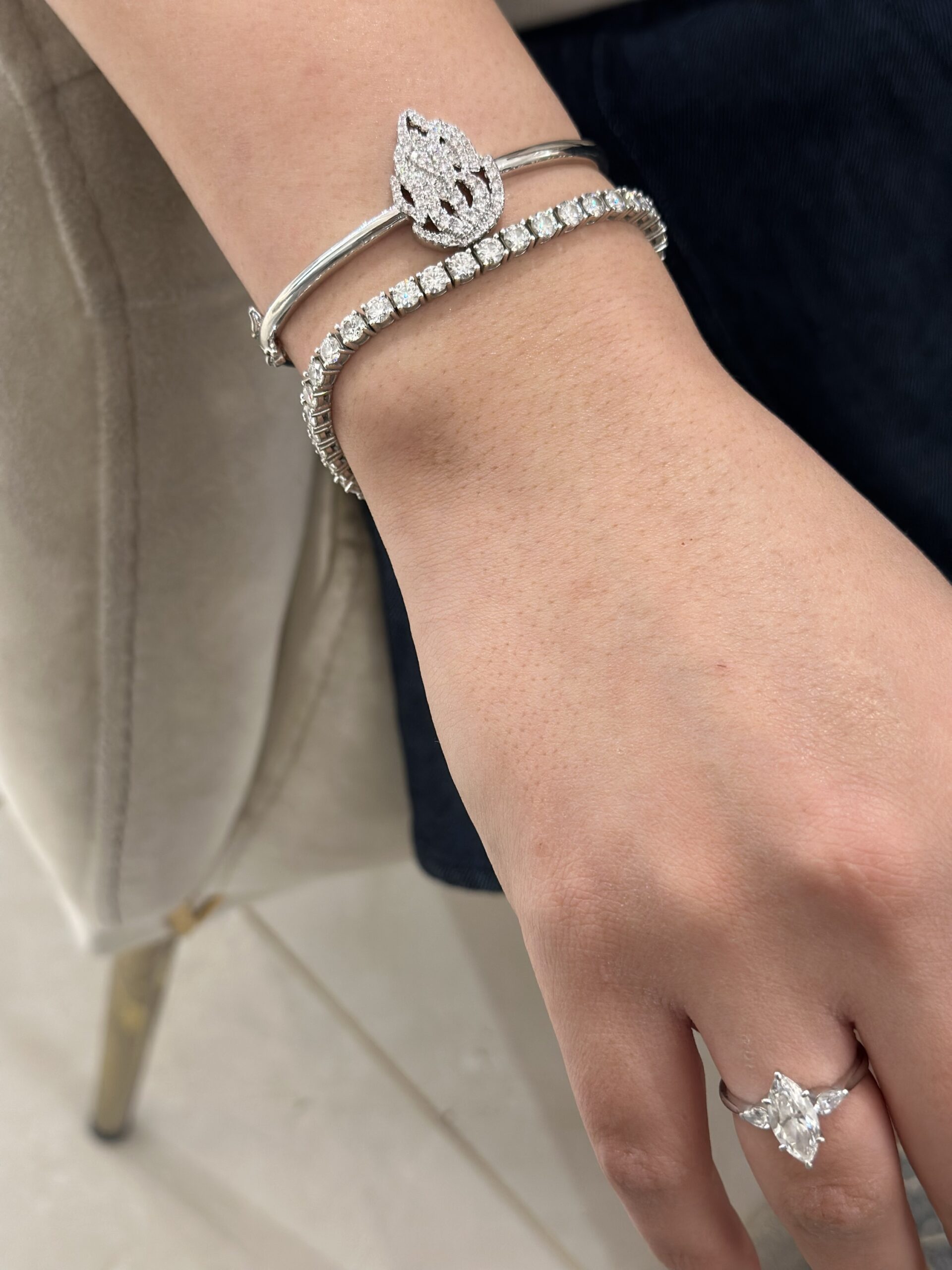 צמיד טניס אוליביה משובץ זרקונים בחיתוך מרקיזה
