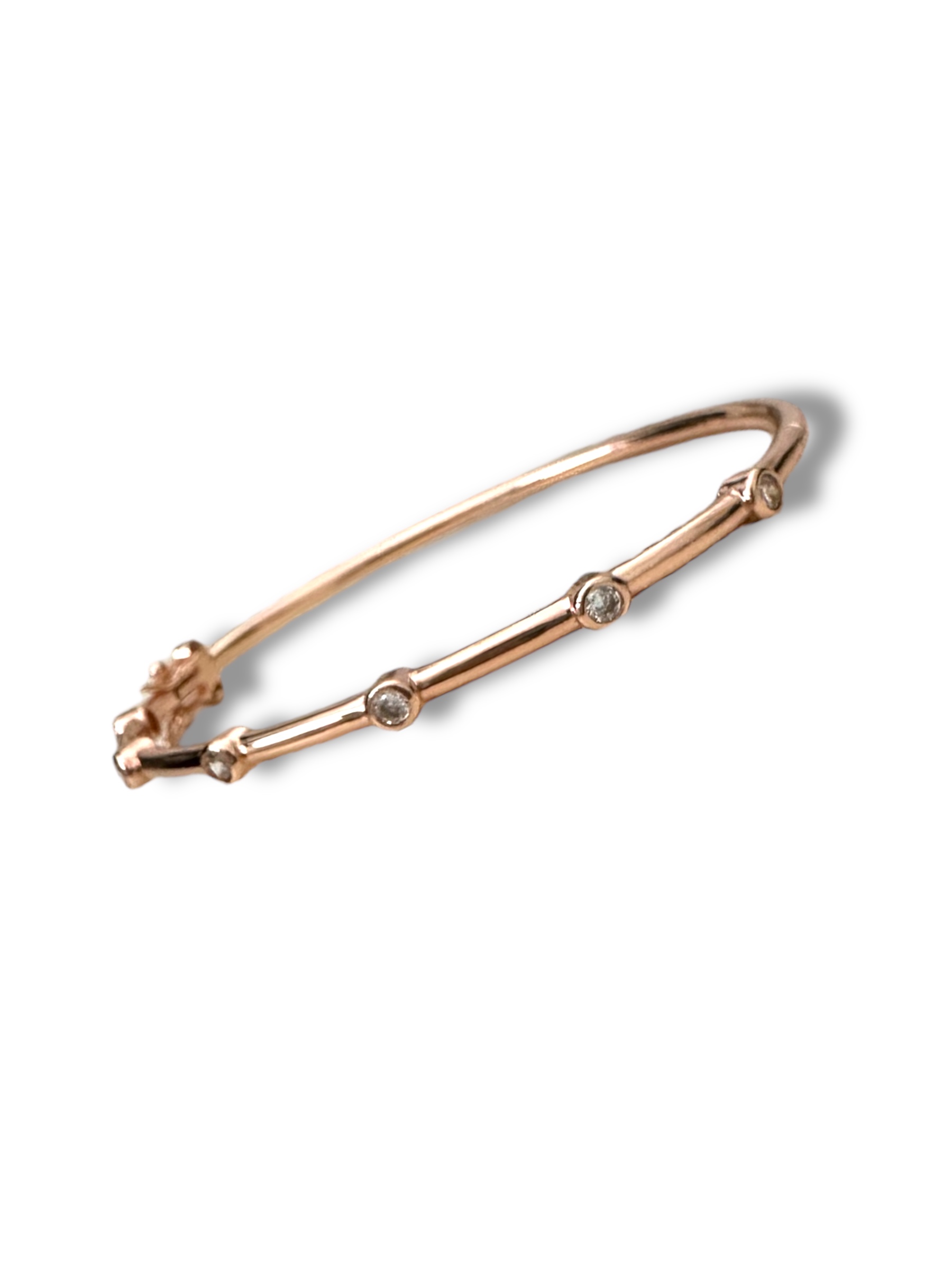 צמיד קשיח מעוצב ע"י 5 זרקונים המשובצים בתוך בית